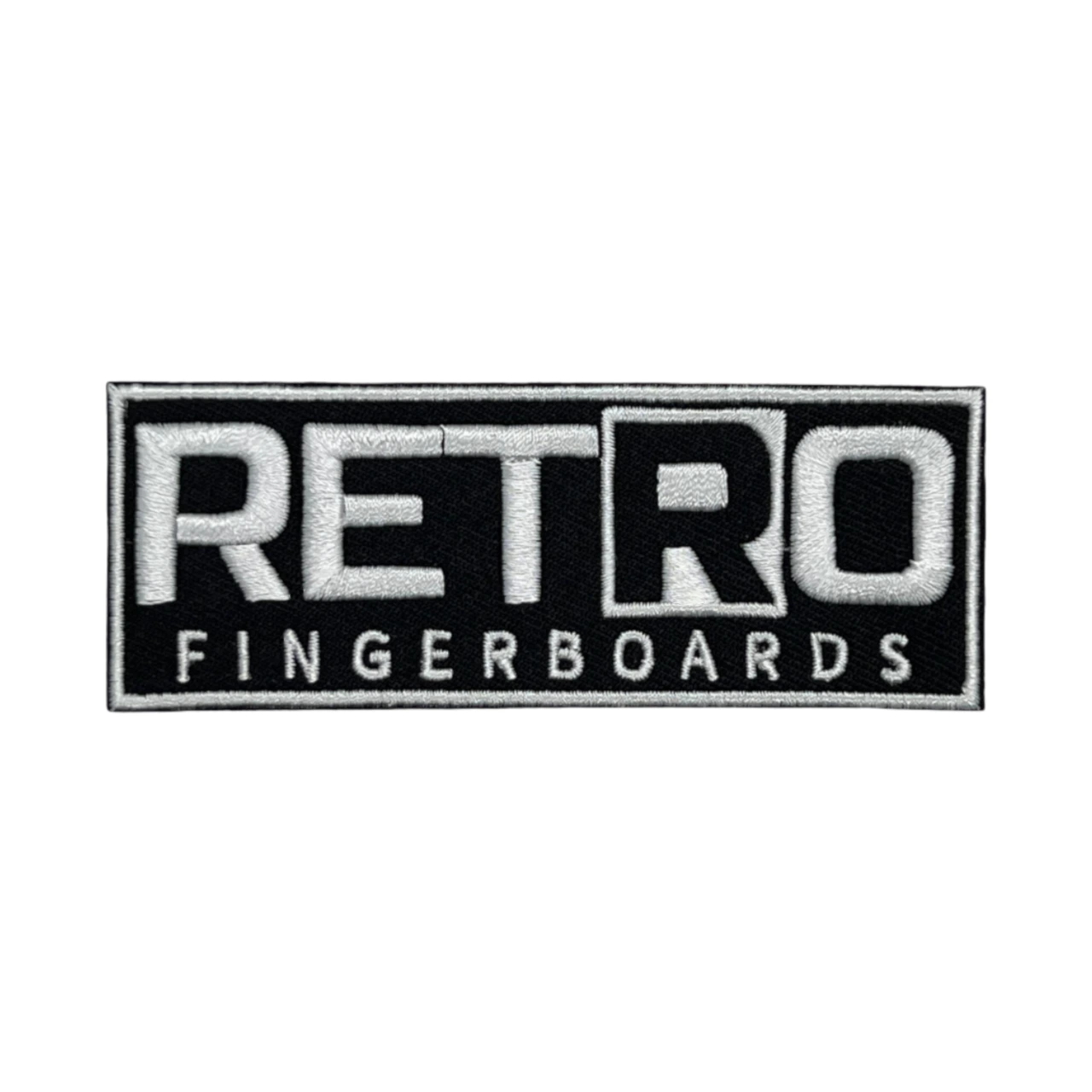 Parche bordado “Retro Fingerboards” con acabado de alta calidad, reverso termoadhesivo y opción de costura en el borde para máxima durabilidad.